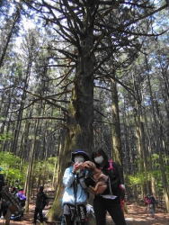 ひと登りして「大杉の広場」(Map C)へたどり着くと、そこには想像以上の杉の巨木があって、大勢の登山者が休憩を取っていました。(写真上)