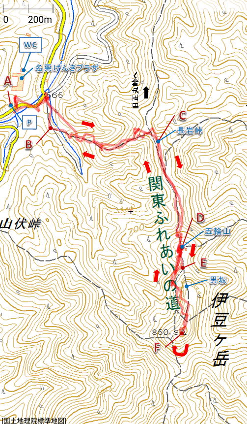 〜 | 分岐 | 〜 | 五輪山 | 〜 | 長岩峠 | 〜 | 登山口 | 〜 | 名栗げんき プラザ |