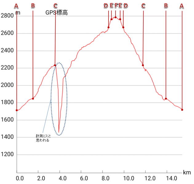 〜 | 三叉峰 | 〜 | 横岳 山頂 |