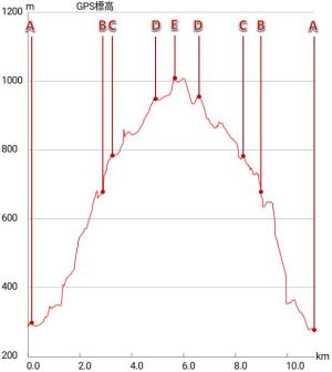 | 地点名 | 〜 | 天狗岩 ピーク |